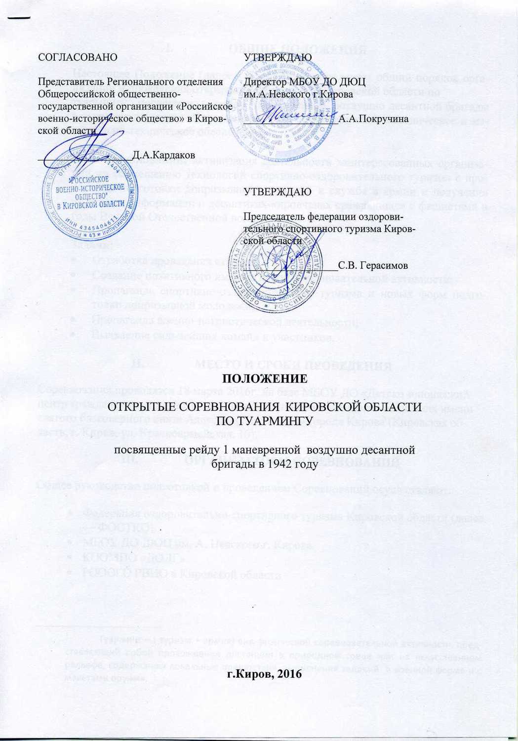 Соревнования проводятся 18 марта 2016г. на базе МБОУ ДО «Детско-юношеский центр гражданского, патриотического и духовно-нравственного воспитания имени святого благоверного князя Александра Невского» города Кирова (Кировская область, г. Киров, ул. Красноармейская, 10)
